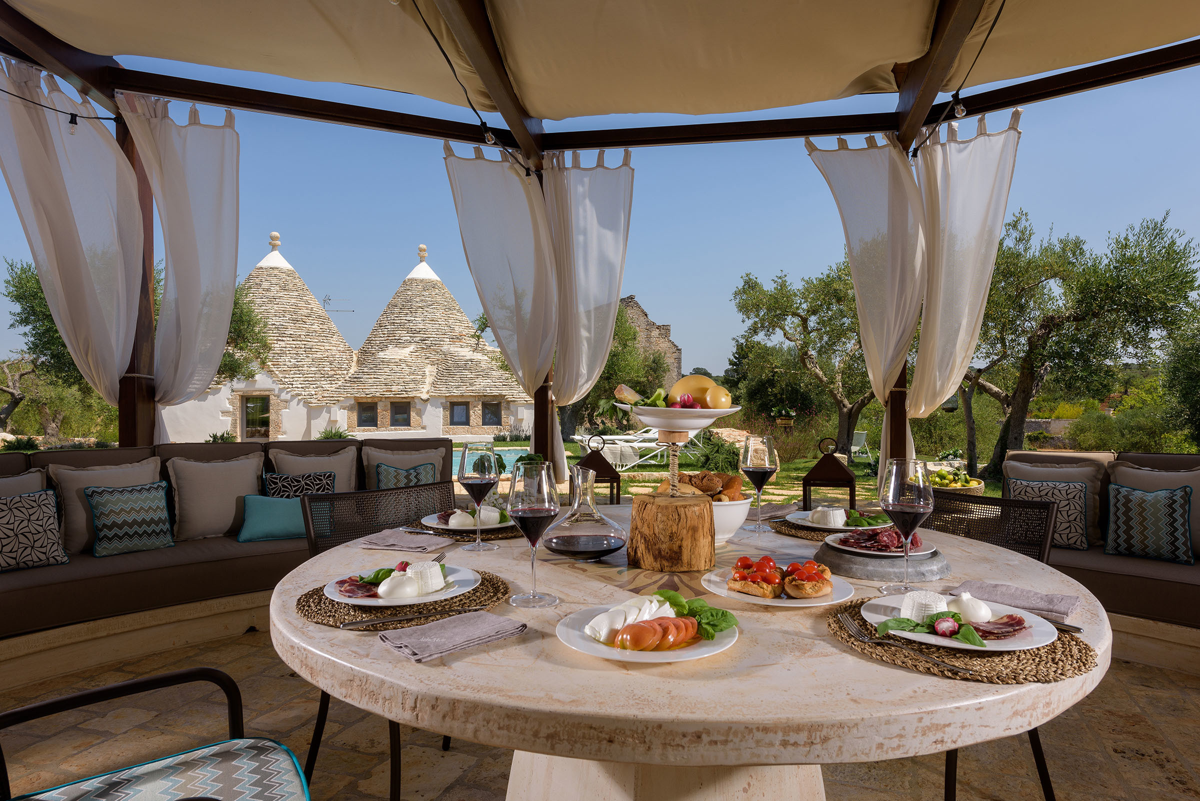 Case di Fabia is an exceptional trullo full of glamour and ancient charm. It is surrounded by 5 hectares of olive groves, some of which are century-old olive trees. Located in Alberobello, a Unesco World Heritage Site, the villa makes a gorgeous base for luxury and relaxation as you explore the Puglia region, a perfect Italian experience for its ancient towns, olive groves, historical sites and architecture. The town center famed for its complex of Trulli is just a few minutes walk and the beach is half an hour by car.